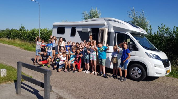 School Hoef en groep 7-8 moesten natuurlijk op de foto bij de camper.